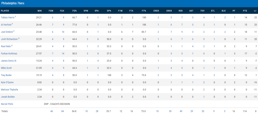 Q3: La pause semble avoir fait du bien. Les Sixers débutent ce quart-temps par un 6-0 avec un meilleur mouvement de balle en attaque ce qui nous permet également de trouver des tirs ouverts. Cependant, on a du mal à prendre un bon avantage suite à une mauvaise défense sur pick and roll notamment de la part des Sixers. Excellent passage de la part de Furkan Korkmaz dans ce quart-temps qui nous montre sa palette offensive.